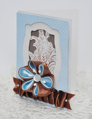 Сама открыточка получилась объемной и за счет цветка и за счет белой окантовки, которая напоминает паспарту. Вырезала "окошки" вручную ножом. Мечтаю о машинке для вырубки и теснении, но это пока в мечтах.